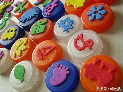 海绵纸贴在瓶盖上,就变成好玩的印章了!