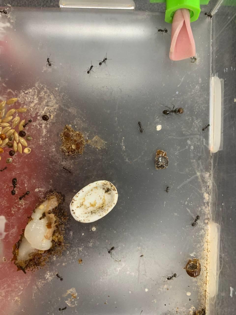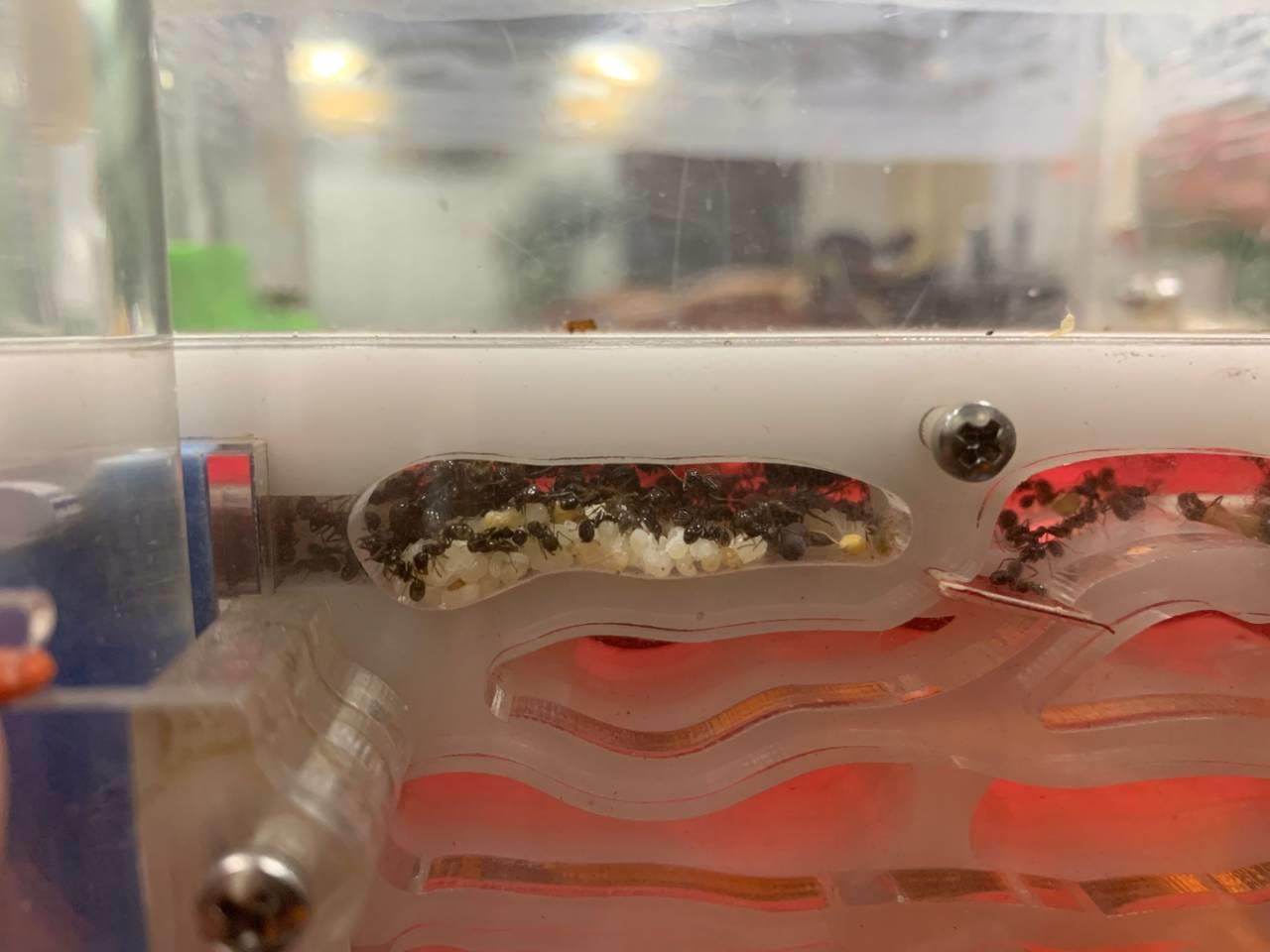 生活习性:该蚁性情凶猛,集体作战,但是由于战斗力极其低下,给人一种温顺的感觉。喜食种子,平时给予充足的清水,喂一些粟米、狗尾巴草籽之类就可以满足需要,像养小鸟一样非常简单方便,但是也要适时投喂昆虫补充蛋白质,避免出现工蚁营养不良或蚁后吃卵的现象。