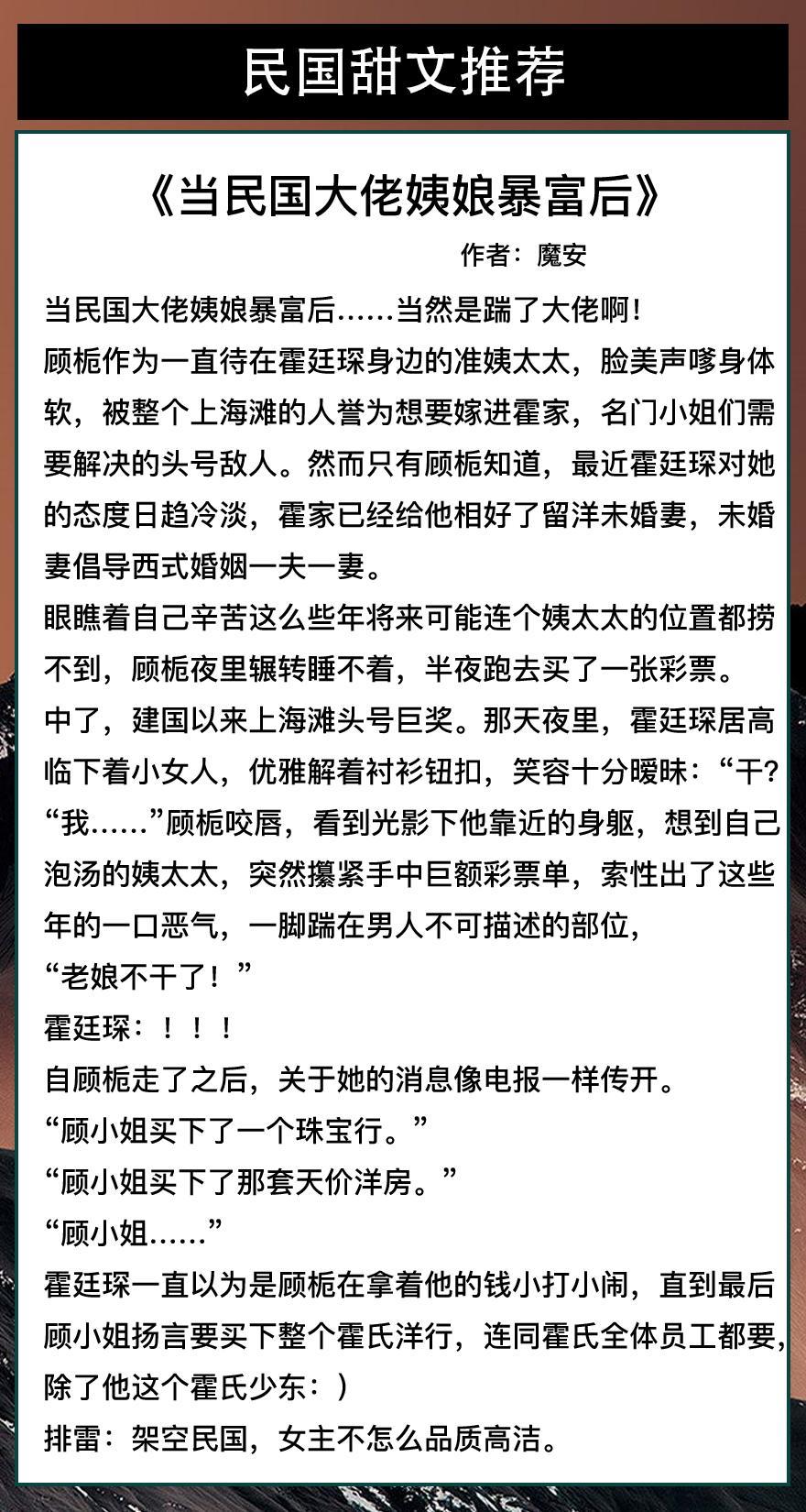 第一本《当民国大佬姨娘暴富后》作者:魔安