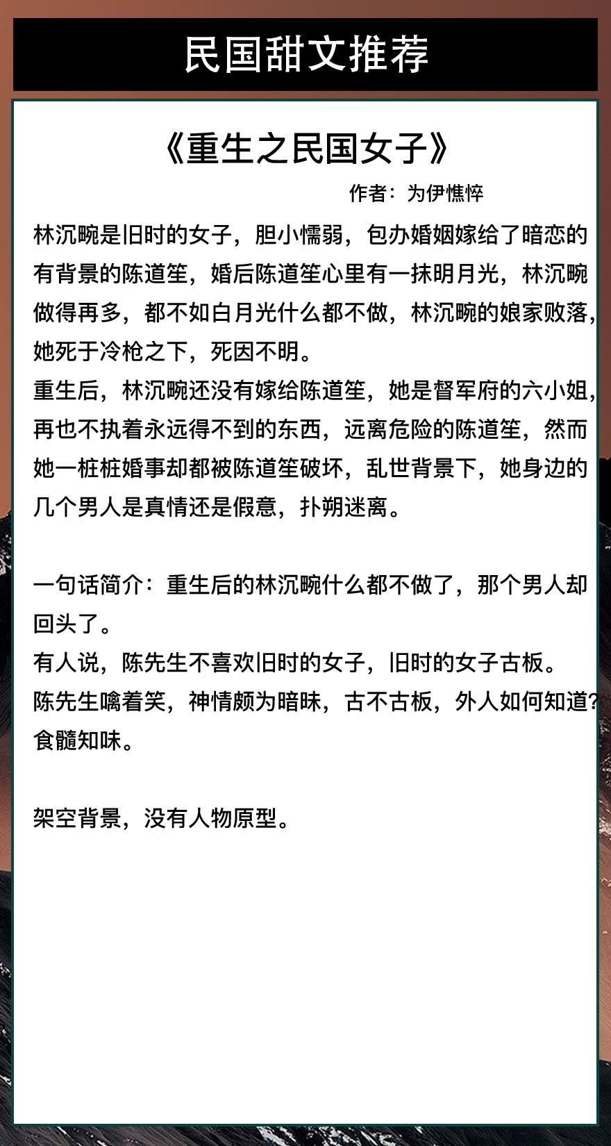第六本《重生之民国女子》作者:为伊憔悴