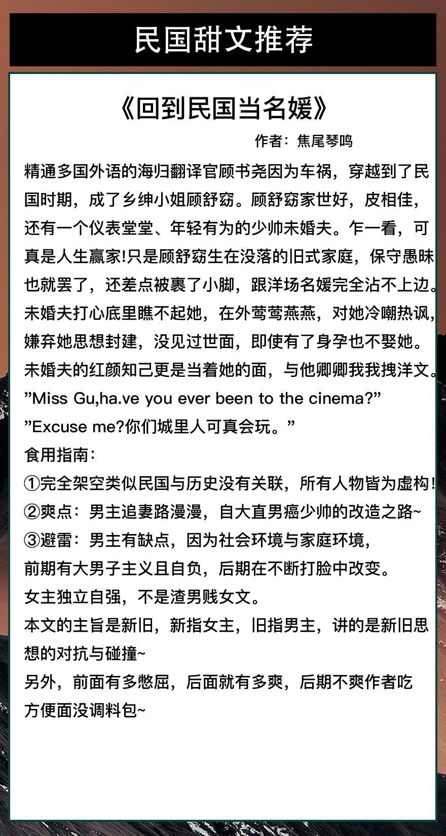 第二本《回到民国当名媛》作者:焦尾琴鸣