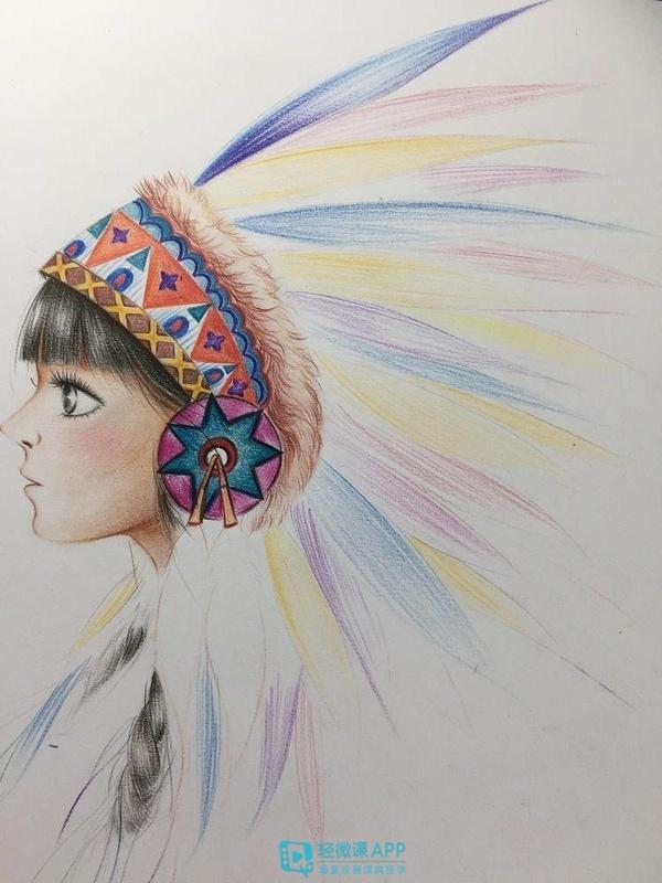 羽毛也用比较抢眼跳跃的对比色系,用长线条铺色,线条一定要顺滑。