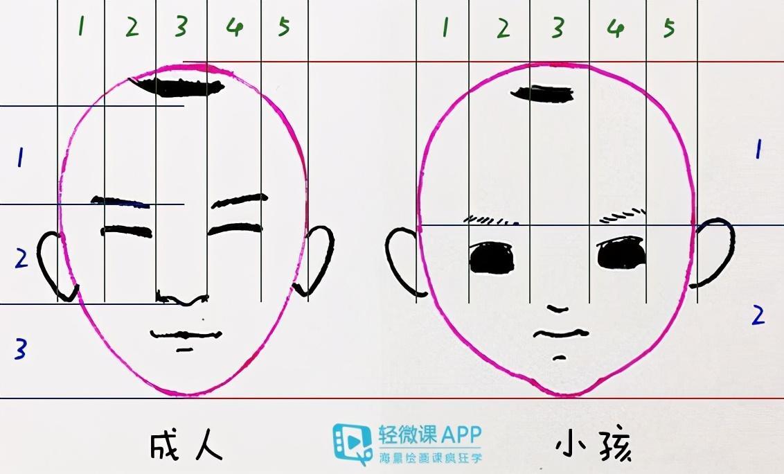 成人的眼睛在脸部的中心位置,儿童的眼睛中心位置以下