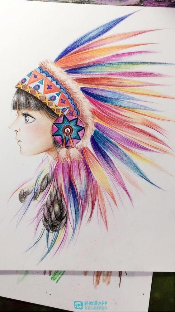 另外,用各种色彩画出一些纤细多彩的小羽毛来增加羽毛的层次,更加是来渲染画面的气氛。