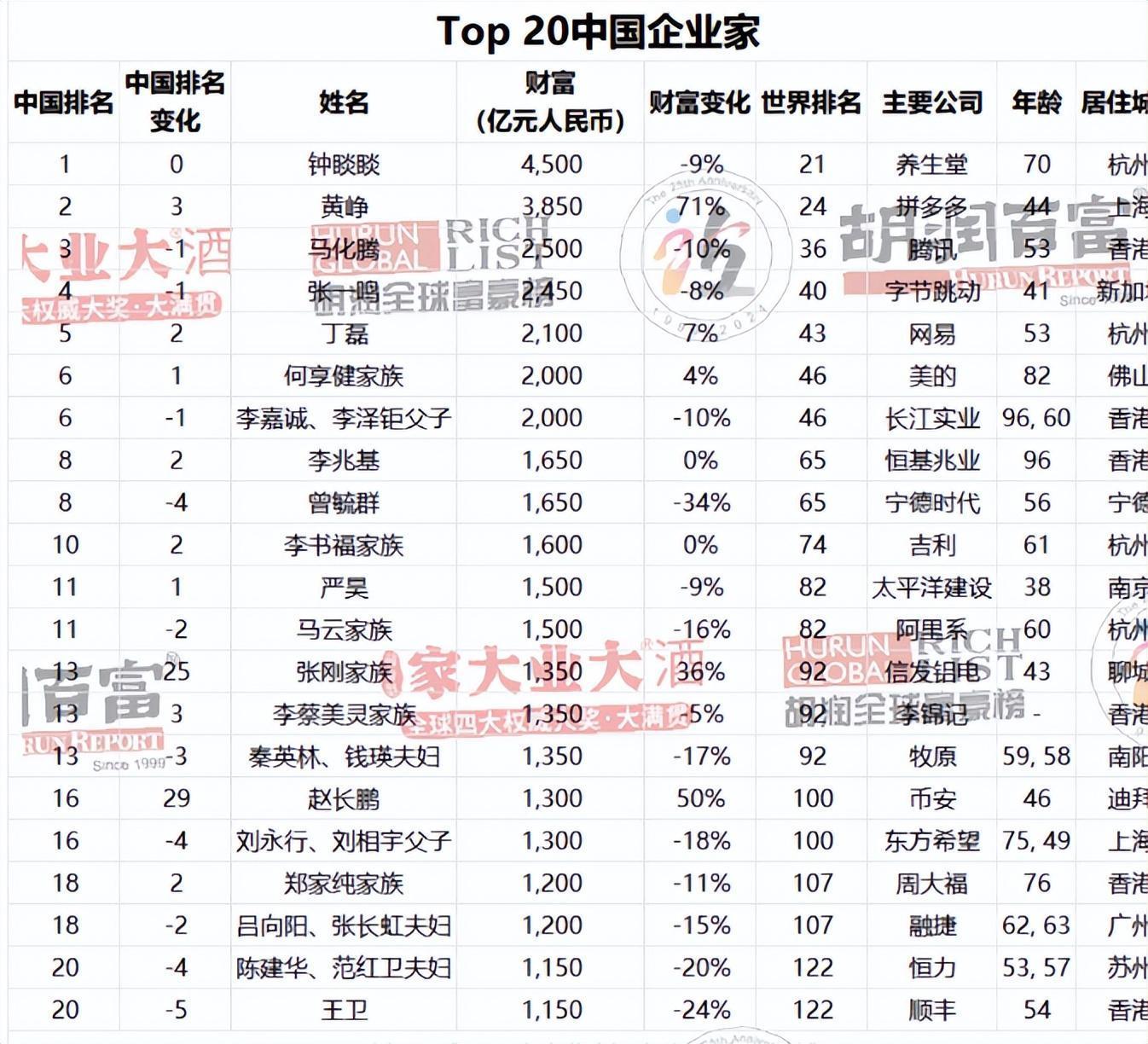 国内大事件五:2024胡润全球富豪榜发布:钟睒睒连续第四次成为中国首富