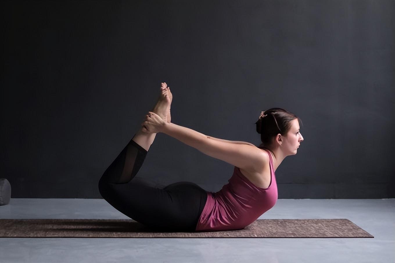 弓式加强你的背部肌肉。拉伸身体前部,增强颈部和腹部力量。