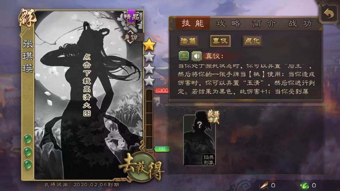 首先有个先决条件,这个技能更像是陆绩的怀橘,上来就给了真仪四个小技能各一次的使用机会。这是张琪瑛的强度来源,要知道大乔小乔这样的武将并不差,就是启动速度太慢了。再来看看四个技能的详细描述: