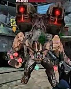 巨型泰坦:全身被生化铠甲所覆盖的超重型生化人,因为庞大的身躯而被称作“泰坦”,配备有导弹发射器,能对地面和空中发动毁灭性的攻击。面对泰坦时,要注意躲避它的导弹轰炸和致命突击。(出场地图:巨人城废墟)