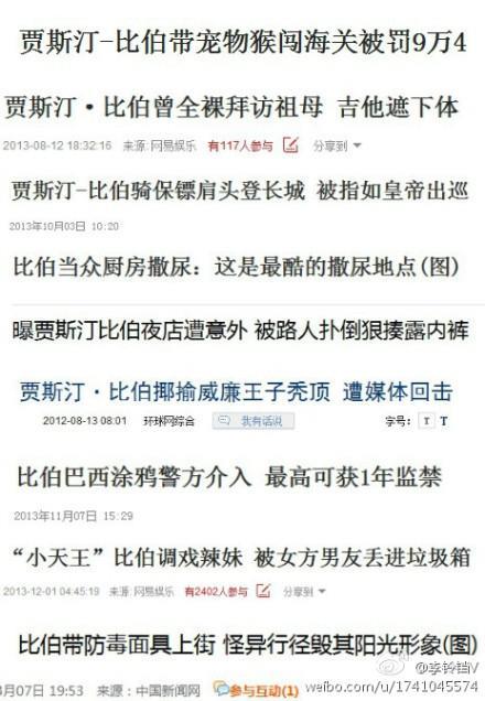 比伯的不得人心,由此可见一斑。