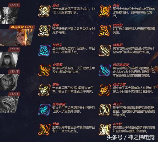 对金克丝而言彗星和兵工厂这样强化大招的芯片还是很合适的。另外就是饥渴让金克丝的被动更容易触发,打出收割的节奏。
