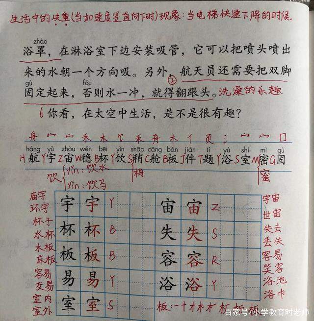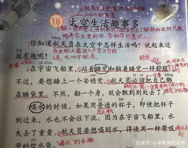 二年级下册《太空生活趣事多》预习,跟着老师笔记一起学