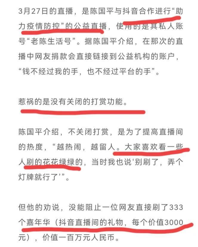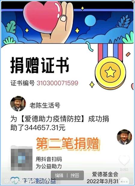 而后又因为老陈在进行“助力疫情防控”公益直播时,