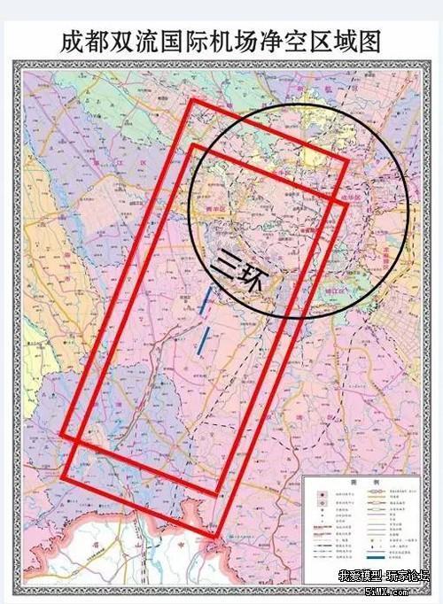以成都双流机场为例,深红色区域为禁飞区,二圆为30米限飞区,两段体型为60米限飞区,外圆为120米限飞区。