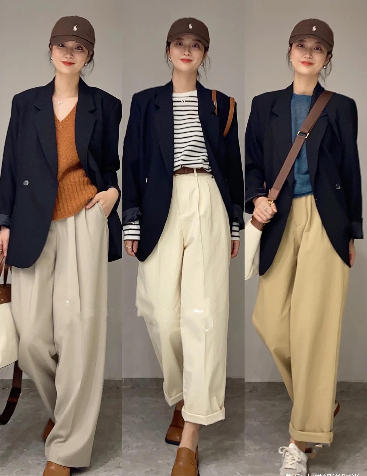 喜欢帅气小男孩风的,还可以用棉质宽松裤装混搭黑西服,帅气慵懒有格调。比较推荐的有卡其色的棉质直筒裤、阔腿裤,内搭休闲感的T恤率性又帅气。