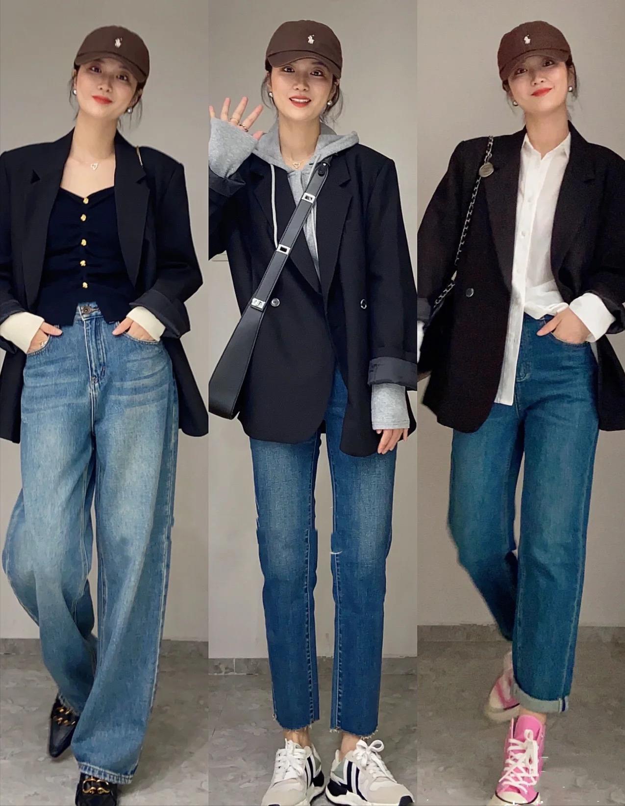说到西服穿搭,最受欢迎的当属与牛仔裤一起演绎出的韩系休闲风了!秋天通常内搭宽松的T恤,或者是字母连帽卫衣,增加休闲感,整个人看起来也元气减龄了许多。