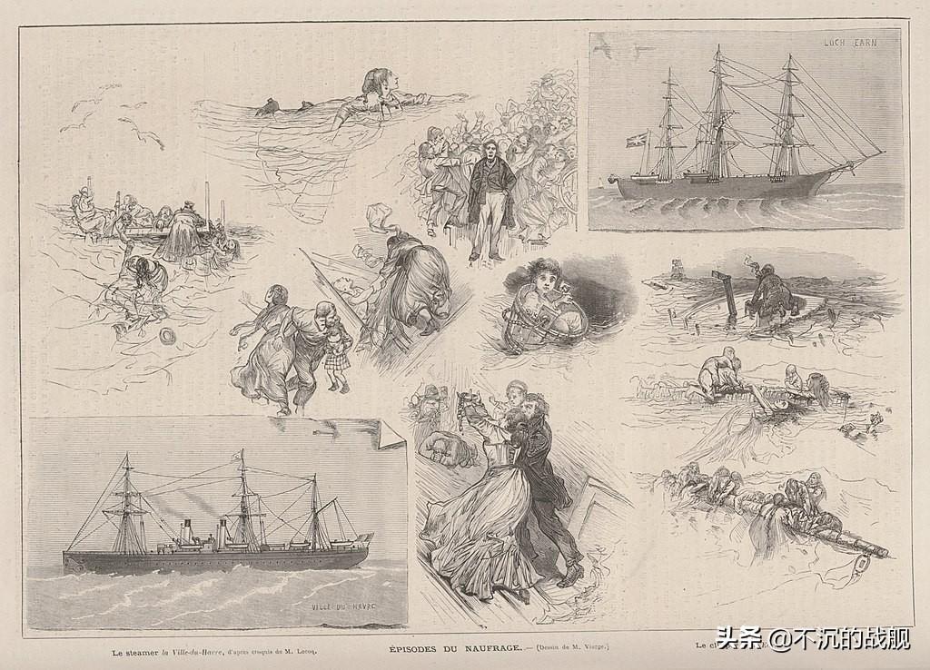 今天介绍一起发生在1873年的船难。在大西洋中部,勒阿弗尔号邮轮((SS Ville du Havre))和厄恩湖号快船(Loch Earn Clipper)相撞,两船双双沉没。