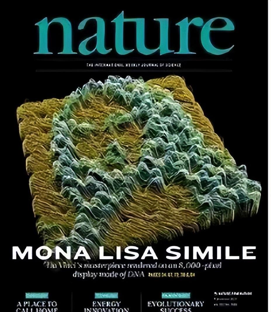 下面说个直观些的,钱璐璐开发了一种“DNA折纸技术”,可以让大块细胞结构组装成想要的样子。为了直观的呈现,她和小组用DNA组装出一幅“蒙娜丽莎”画像。