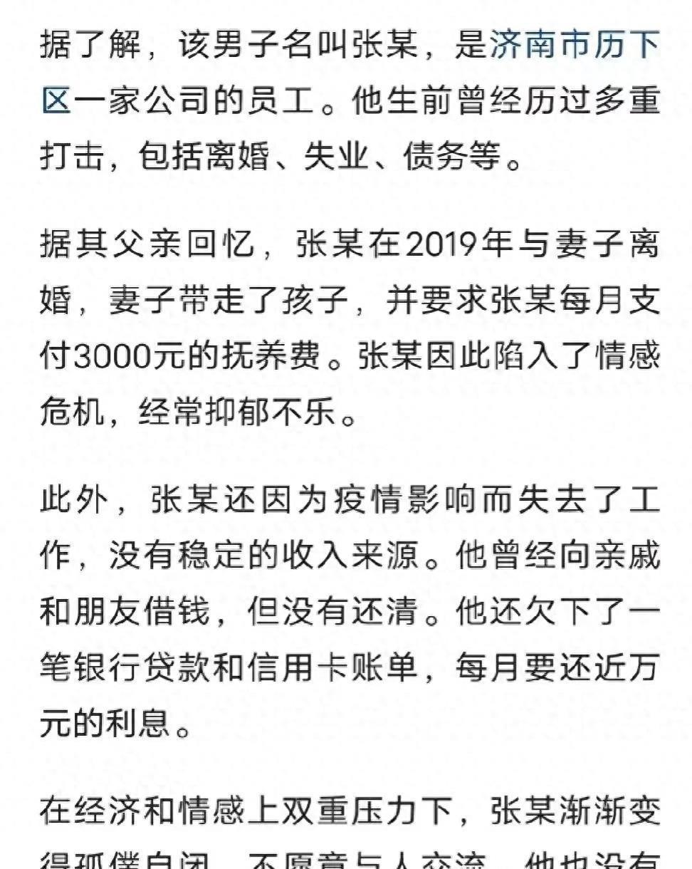在网络上,有人猜测他是因为债务、家庭问题或精神压力而自杀。但这些只是猜测,我们并不能准确地了解他究竟是因为什么原因做出了这一极端举动。然而,这个事件也让我们意识到了社会中不同类型的人以及他们所面临的困境和压力。
