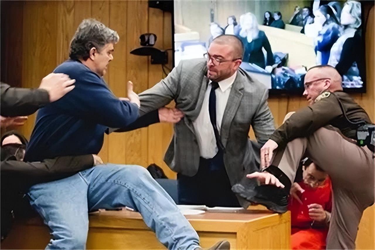 还有一位父亲,他的三个女儿都曾受到过纳萨尔的侵犯,他要求单独和纳萨尔相处5分钟,被法官拒绝后,直接向纳萨尔冲了过去,被人拦下。