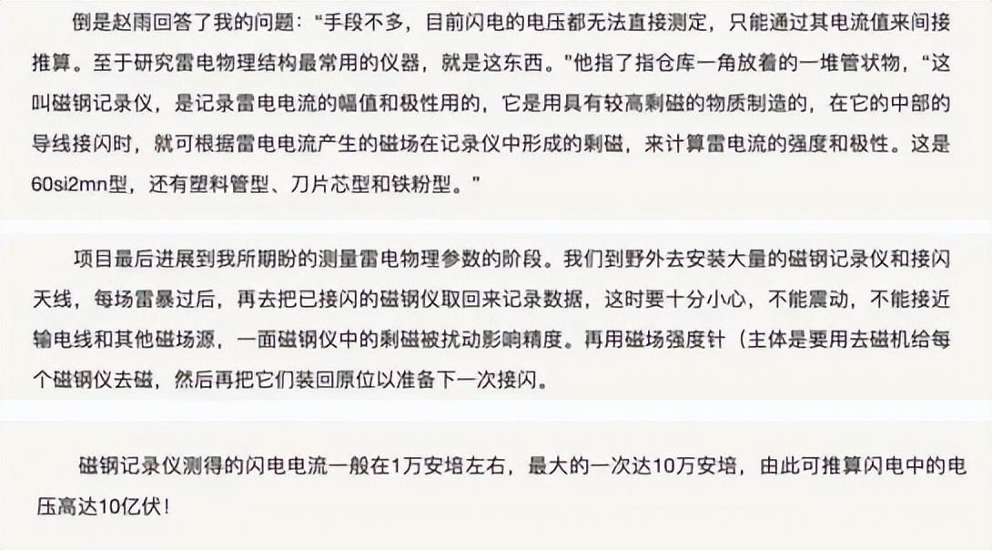 为了揭开父母身故之谜,主角陈昆开始痴迷于雷电的研究。在讲到“对雷电内部结构的探测方法”时,原著是这么写的: