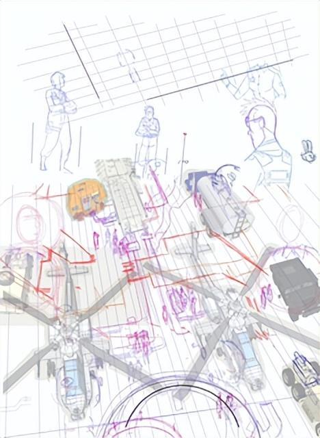 这是《球状闪电(下)》里一处分镜手稿,仔细看的话,每个人物在画面中的位置及与背景的呼应关系都有着非常巧妙的安排。