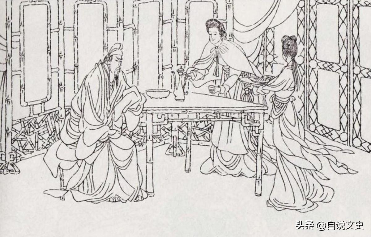 喝到傍晚的时候,异人从袋子里拿出一些钱,给了乞丐,说:“这些钱,就当是给你买胭脂的钱吧,不要推辞了。”