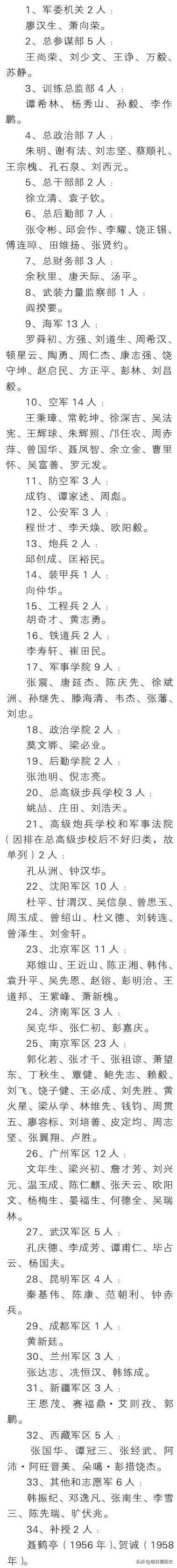 赵启民、方强、罗舜初、王秉璋、罗元发、聂凤智、曹里怀、周赤萍、邱创成、匡裕民、向仲华、谭家述、李寿轩、崔田民、欧阳毅、冼恒汉、王恩茂、张国华、萧望东、丁秋生、赖毅、邝任农、林维先、周贯五、刘先胜、刘培善、彭嘉庆、黄火星、刘兴元、文年生、詹才芳、梁兴初、吴克华、毕占云、陈正湘、彭明治、姚喆、杜平、甘渭汉、曾思玉、郑维山 、聂鹤亭、贺 诚。