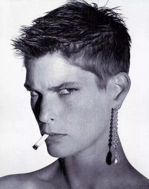要论模特界「中性风」和「厌世脸」的鼻祖,一定是Leslie Winer。上世纪70年代末至80年代初,她以女扮男装,反潮流的女性形象而闻名活跃于时尚圈。