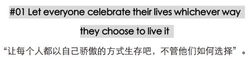 “地球上所有人都值得受到同等的尊重,勇于真实的做自己。”