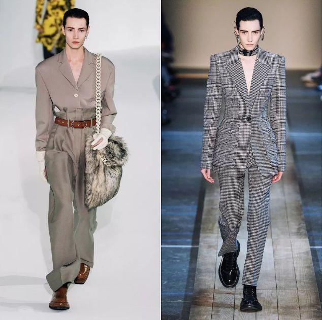 中性风发展到今天,Jean Paul Gaultier让男人穿上胸衣和裙子、在T台上展示男性化妆的魅力;Hedi Slimane用男装的剪裁处理女装,不管服务于哪个品牌,总是保持雌雄同体的美学理念;Gucci的创意总监Alessandro Michele正式宣布男女装合并走秀;Jonathan Anderson以性别模糊的概念大胆的探索时装的未来,更为Loewe带来了颠覆性的改变与好评;Givenchy和John Galiano更是不断在男装中运用亦刚亦柔的剪裁,表现出属于男性的浪漫与性感。如今无论是秀场到街头,还是时尚零售业,我们看到了更多具有多元性、包容性的设计,男女的彩色代码逐渐被解除。
