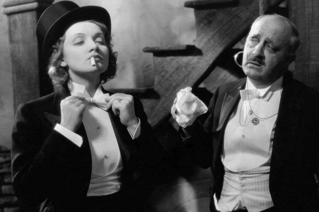 与此同时,曾传闻因担心纳粹势力崛起,将希特勒“杀死在床上”的好莱坞巨星Marlene Dietrich把德国魏玛的性别模糊文化带到好莱坞,也带动着女士长裤的流行。