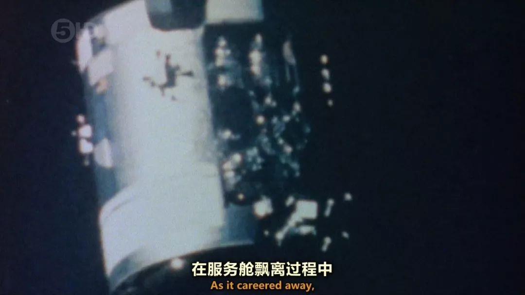 当他们准备重入大气层时,阿波罗13号的船员们抛掉了服务舱,在服务舱飘离过程中,他们匆匆拍了张受损情况的照片,从照片上看不出爆炸的原因。