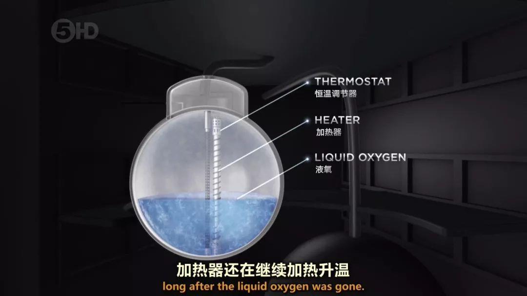 他们不知道罐子液氧清除干净很久以后,加热器还在继续加热升温,高温将罐内用于覆盖导线的绝缘层烧掉了。发射那天,将液氧装入罐中时,它就成了一颗待爆的炸弹。