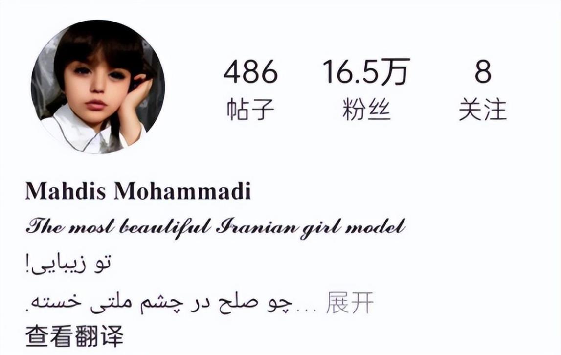 网络上这位颜值出众的小女孩名叫Mahdis·Mohammadi,出生在伊朗,中文名字叫马赫蒂斯。
