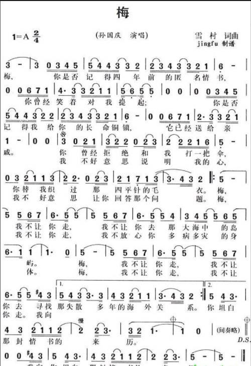 他的才华也得以体现,孙国庆所唱的《梅》,歌词便出自雪村之手。
