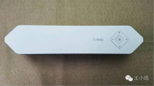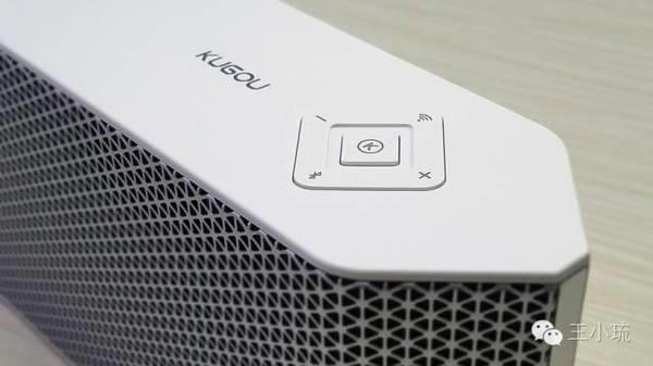 机身顶部除了酷狗LOGO设计,旁边设计有呈现菱形分布的功能键设计,根据图标示意便可以领会各键功能:按键部分配有WiFi键、蓝牙键、音量加减键以及电源开关键。各键在开启功能使用状态下会显示为柔和的白色,不会对视觉造成干扰。