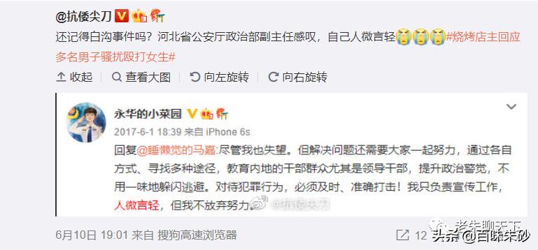 发出这一感叹的还是彼时河北省公安厅的人,“白沟事件”发生后,这位博主因身处河北公安厅,且在网络上非常活跃,于是,顺理成章的成了网友们关注的焦点,这同学也曾信心满满的各种分析案情、推测最终案件的走向,结果呢?案子竟然也“蜻蜓点水”了,然后便有了这同学上面帖子中的那番感叹。