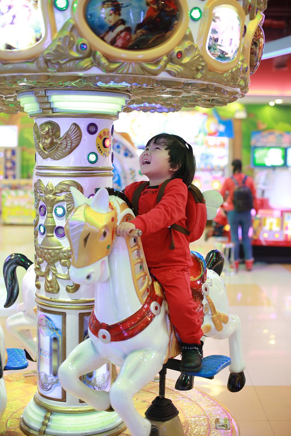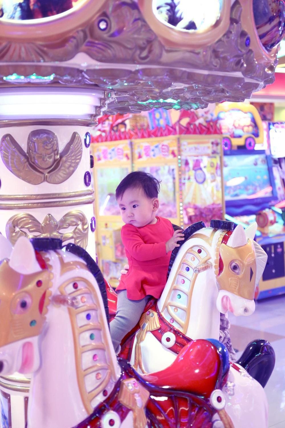 格子最愿意玩木马,游乐场里6个游戏币一回。