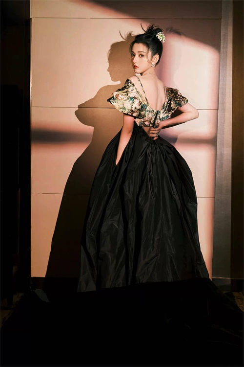 当天宋祖儿一袭抹胸花卉礼服,氛围感十足,