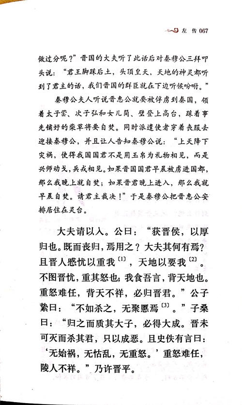 大意为“晋国的大夫听了此话后对秦穆公三拜叩头说: “君王脚踩后土, 头顶皇天, 天地的神灵都听到了君主的话, 我们晋国的群臣就在下边听候吩咐。”