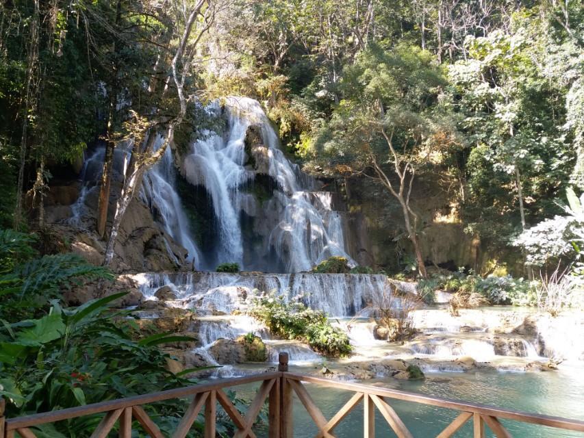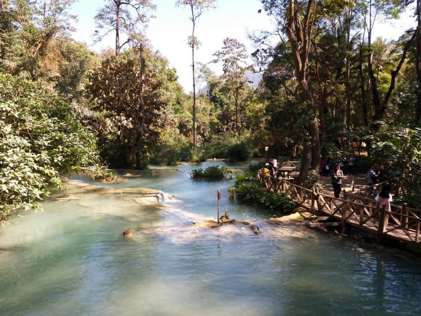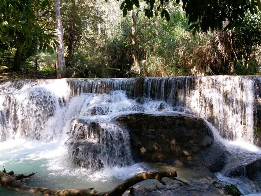 光西瀑布位于琅勃拉邦南部大约30公里处,是由一个大瀑布和多个小瀑布组成的瀑布群,总落差达100米,整个景区美丽如画。酷似中国的九寨沟景区。所以中国人称光西瀑布为小九寨沟。