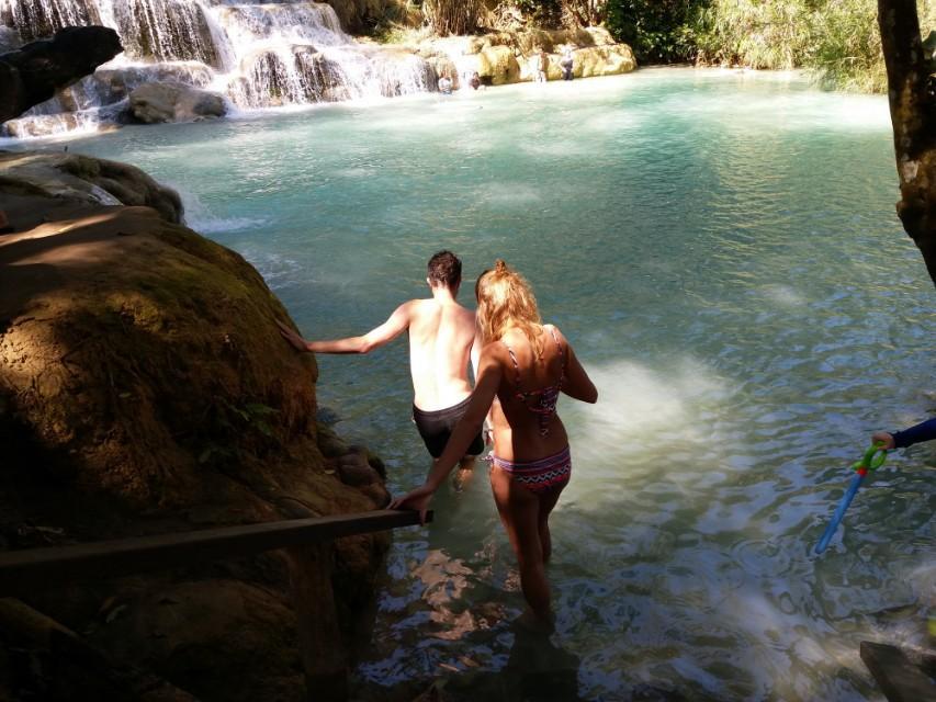 国内和老挝对景区的态度完全不同,国内的景区只能看不能近抚,而老挝的光西瀑布你可以肆意亲近它、抚摸它。不光可以看风景,而且可以戏水。完全颠覆了国人的想象力。如果国人到光西瀑布去玩时千万不要忘了带好泳衣、泳裤,和大自然来个最亲密的拥抱。