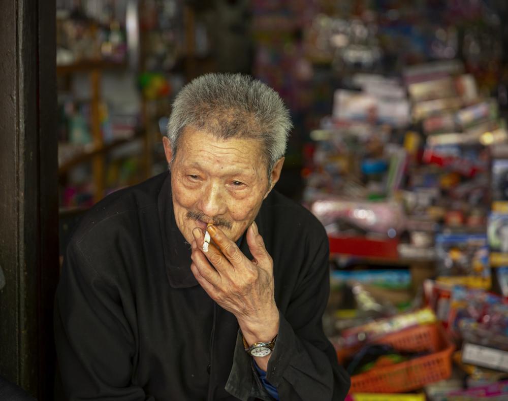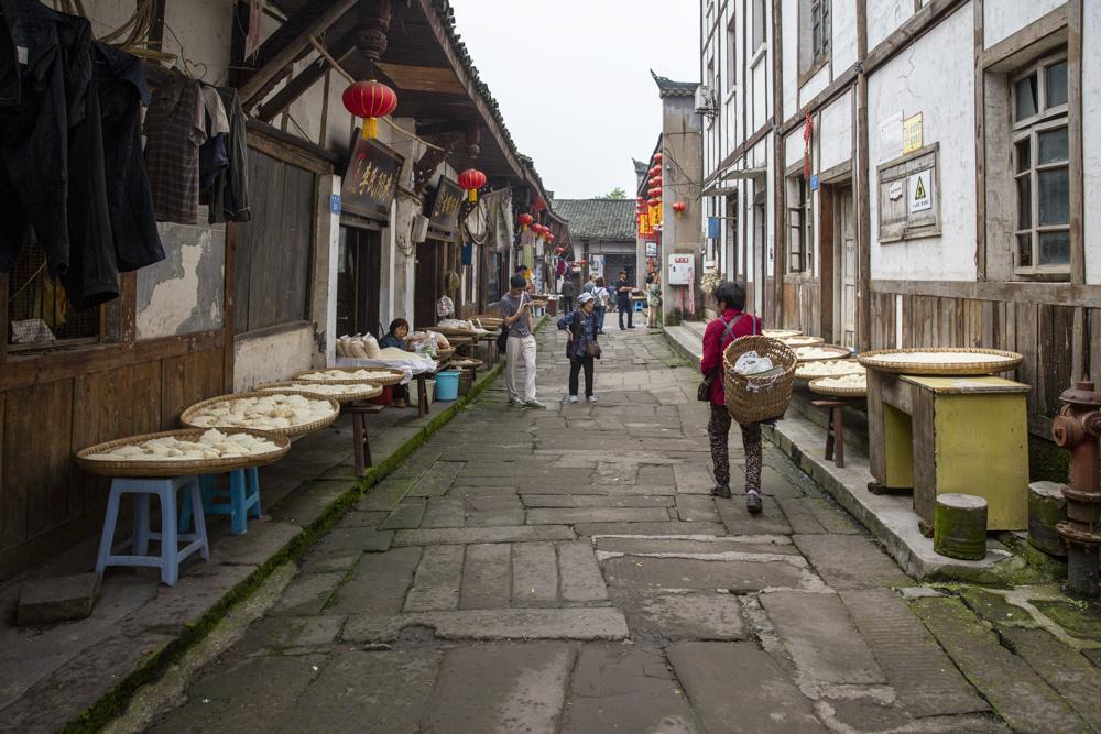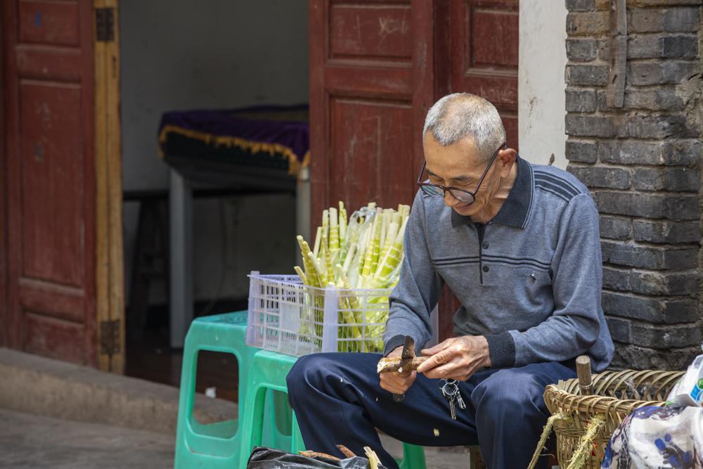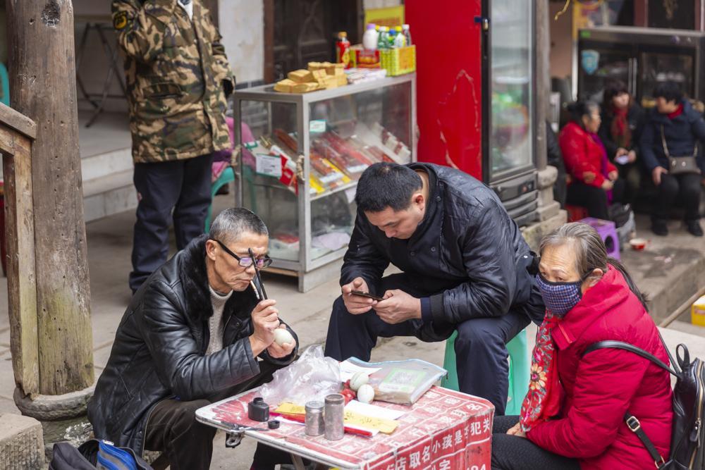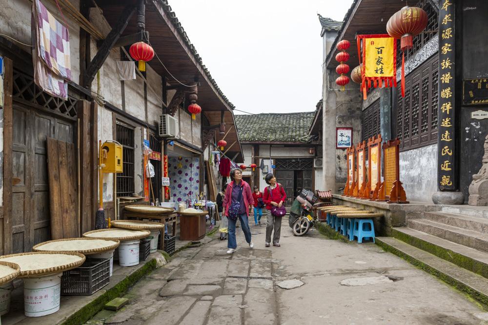 古镇炊烟袅袅,街道上行人陆续不绝,从居民敞开大门中,看到他们古朴的生活状态,看游人走过他们很淡然,面对游人的镜头也不太拒绝,面对世事变迁他们有种不动声色的从容淡定,有的坐在家门口聊天、有的逗小孩、有的下棋,有的看书看披、有的在晒制阴米,有的在护店,他们生活平静祥和,悠闲自得。