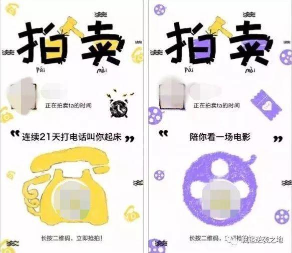 能拍卖的东西非常新奇,比如“连续21天睡前语音跟你说晚安”,“陪你看一场电影”,“教你如何追到我”,“陪你逛街3小时”等等。