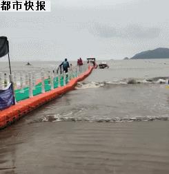 下潜的深度可以达到20-30米。走在气垫浮桥上,可以感觉到今天风浪很大,浪打过来,人都无法站立,必须紧拉着浮桥的绳索。