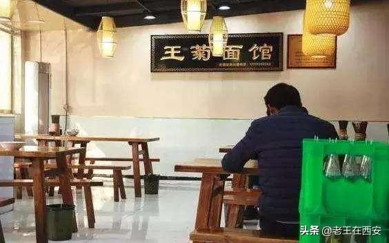 西安高新区有一家面馆,店面很大,大灯笼木板凳,黑色烤漆招牌写着:“王菊面馆”。