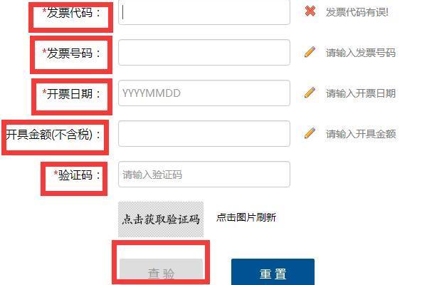 3、在发票查询页面下输入正确的发票代码、发票号码、开票日期、开具金额(不含税)、验证码后点击“查验”。