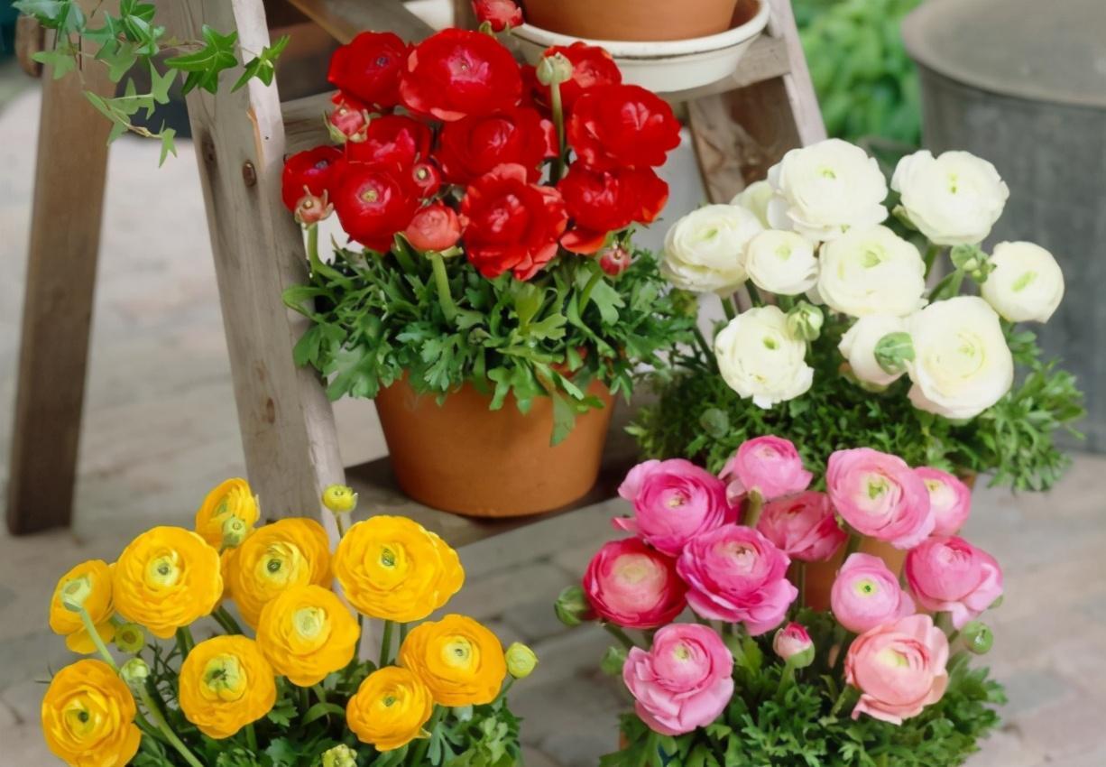 花毛茛相比牡丹和月季,它不但植株小巧玲珑,尤其是盆栽种植,不但节省空间,而且它的花色也很丰富。如果你喜欢牡丹、月季,又没有足够的空间来种植,不如养花毛茛,满足自己的心意。