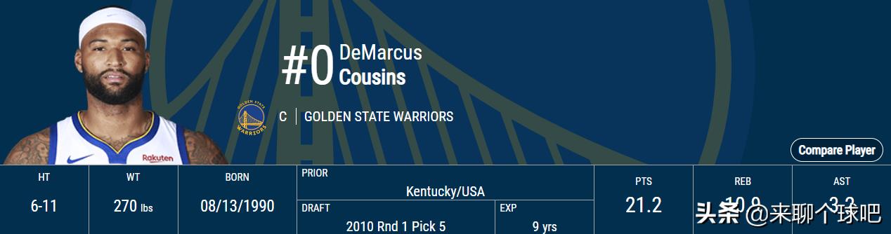 德马库斯·考辛斯(DeMarcus Cousins),1990年8月13日出生于美国阿拉巴马州莫比尔,美国职业篮球运动员,司职大前锋/中锋,现为自由球员。曾先后效力于NBA萨克拉门托国王队、新奥尔良鹈鹕队、金州勇士队、洛杉矶湖人队。