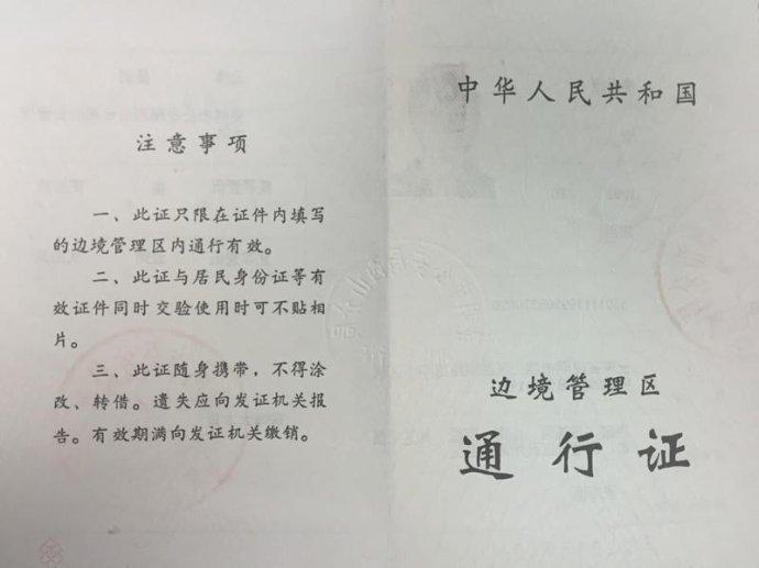 《边境通行证》,其全称为《中华人民共和国边境管理区通行证》。《边境通行证》是指,前往黑龙江、新疆、西藏、广西、云南、甘肃、内蒙古的边境管理区需办理的通行证件。年满16岁且有正当理由者方可申领此证。十六岁以下儿童需由大人带领,或者在大人的边防证上附注携带儿童,具体的情况以当地有关机构规定为准。